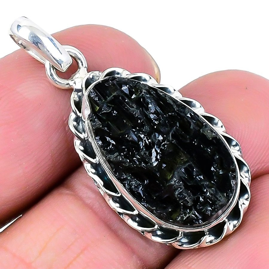Natural Black Tourmaline Solid Silver Wife Wedding Daughters Day Pendant Jewelry
