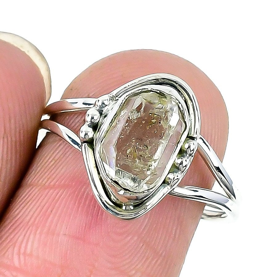 Crown Chakra Natural Herkimer Diamond 925Ā SolidĀ Silver Statement Ring Size 8.5