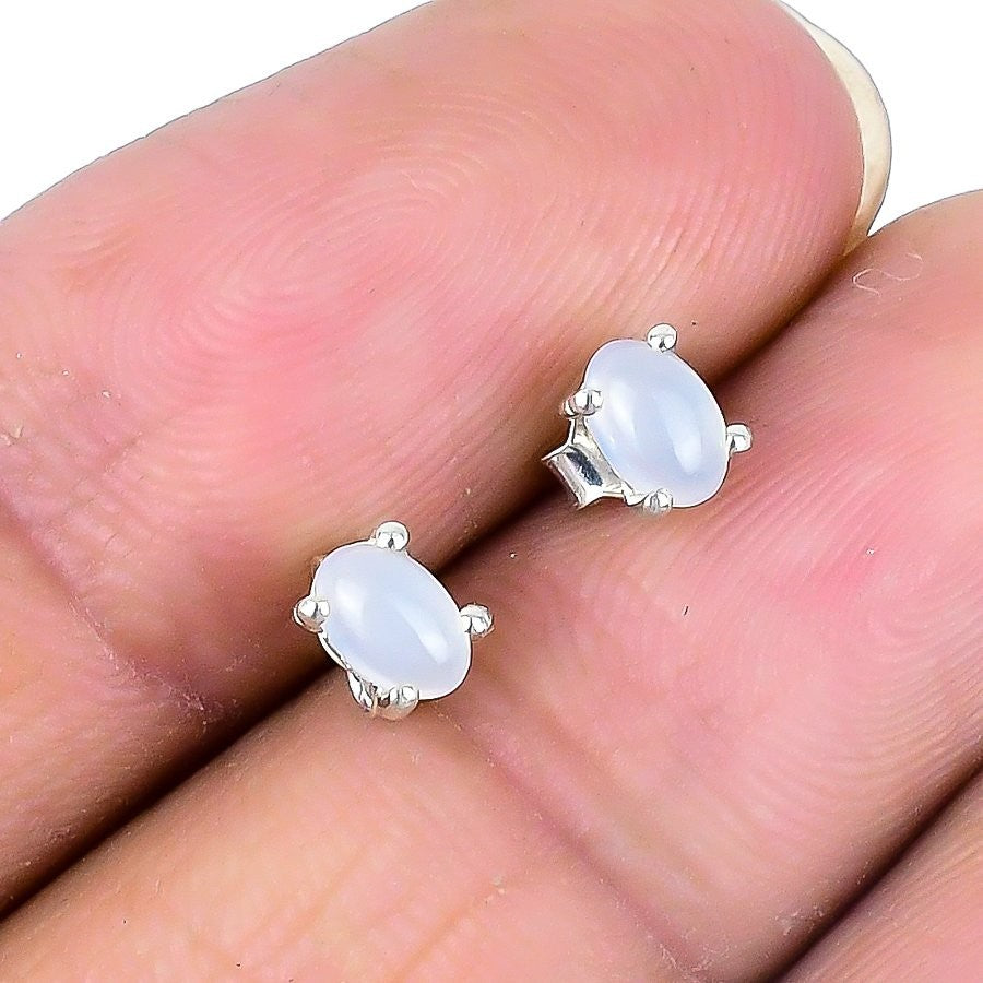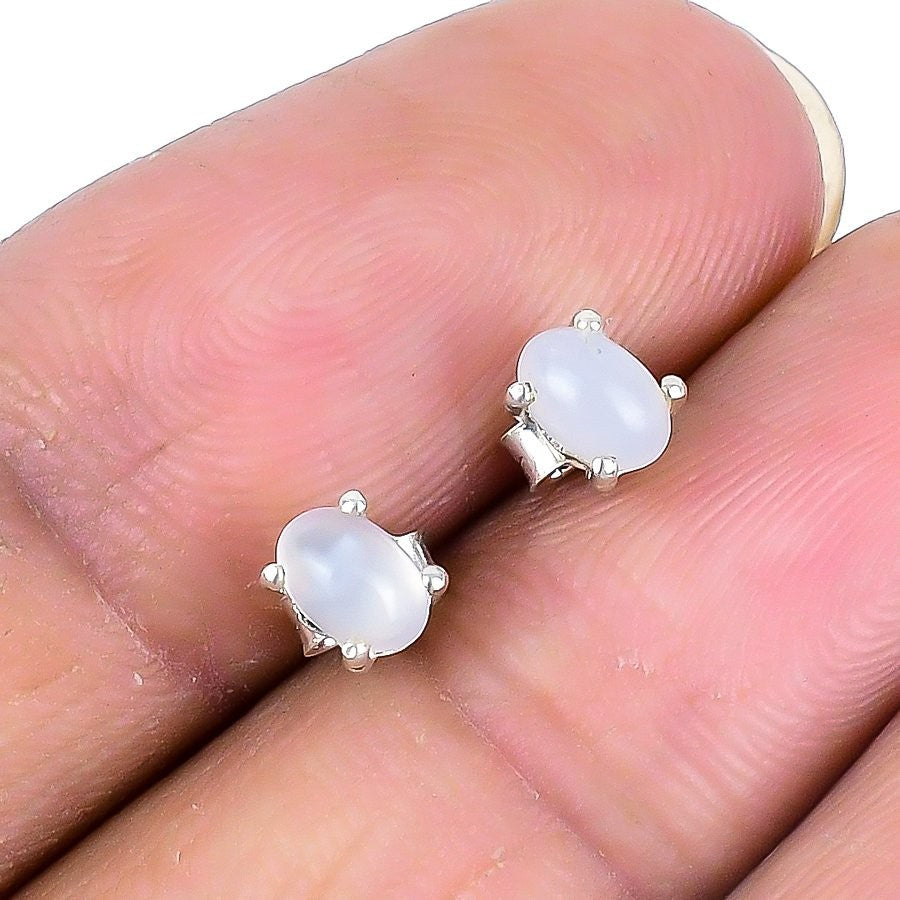 Rainbow Moonstone Gemstone 925Ā SolidĀ Silver Sister Stud Post Earrings Jewelry
