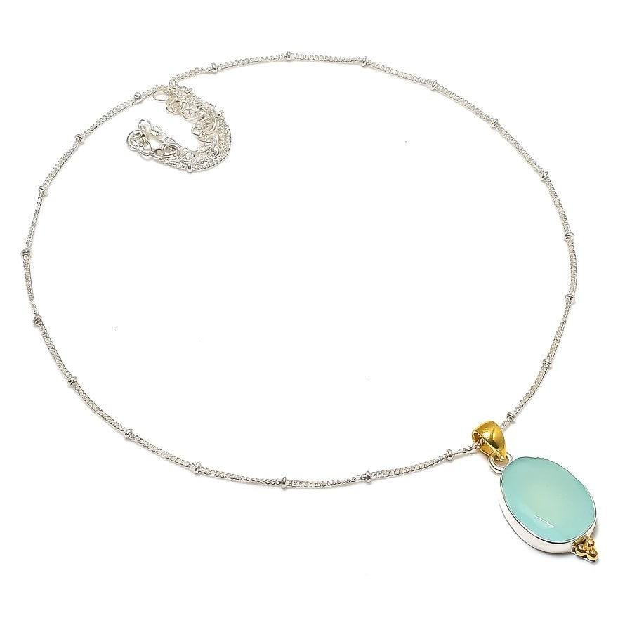 Natural Aqua Chalcedony New Chain Daughter Gift Necklace Jewelry Sterling Silver