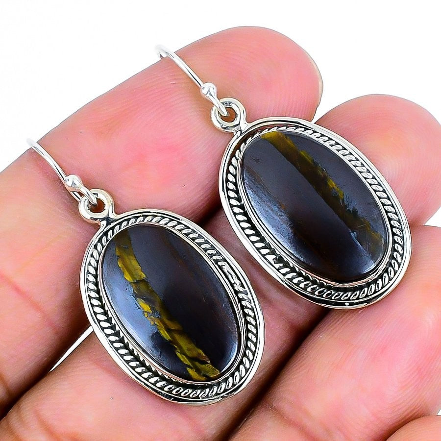 Iron Tiger Eye Gemstone 925Ā SolidĀ Silver Wife Dangle Drop New Earrings Jewelry