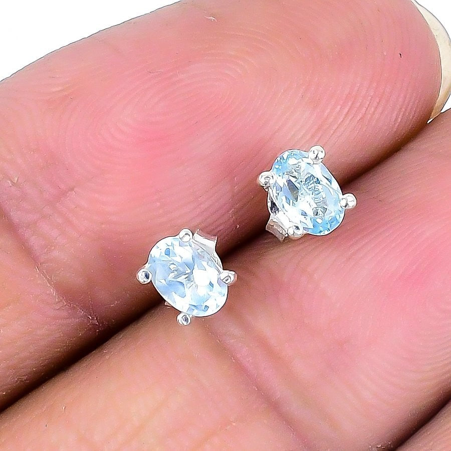 Blue topaz Stone 925 Silver Mother Daughters Day Boho Stud Anniversary Earrings