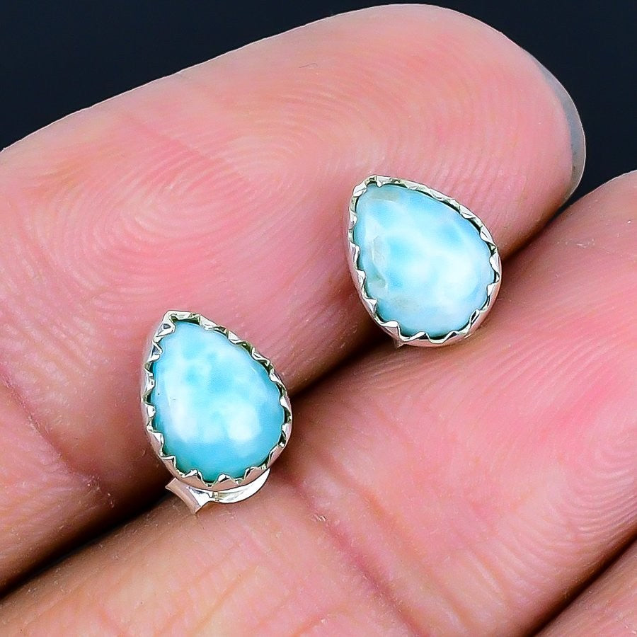 Natural Republic Larimar Solid Sterling Silver New Stud Post Earrings Jewelry