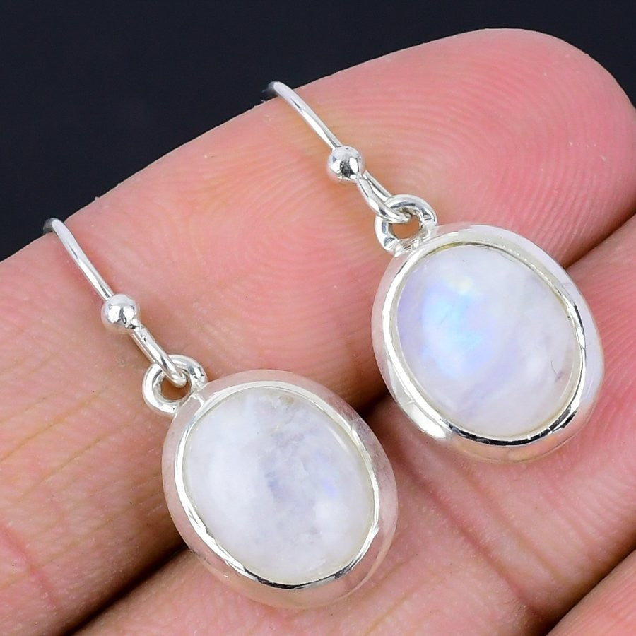 Rainbow Moonstone Stone Drop Dangle Sister Wedding Earrings 925 Sterling Silver