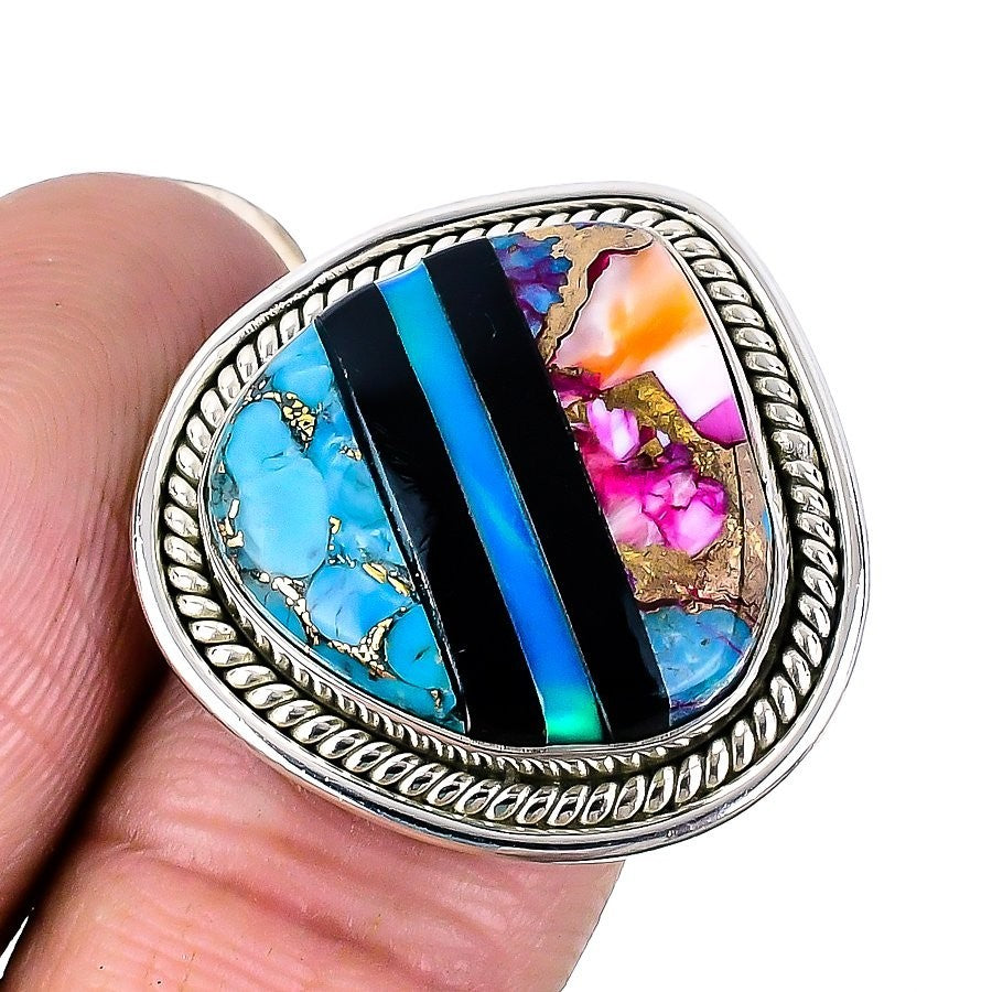 Spiny Oyster Matrix Gemstone 925 Sterling Silver Daughter Statement Ring US 8