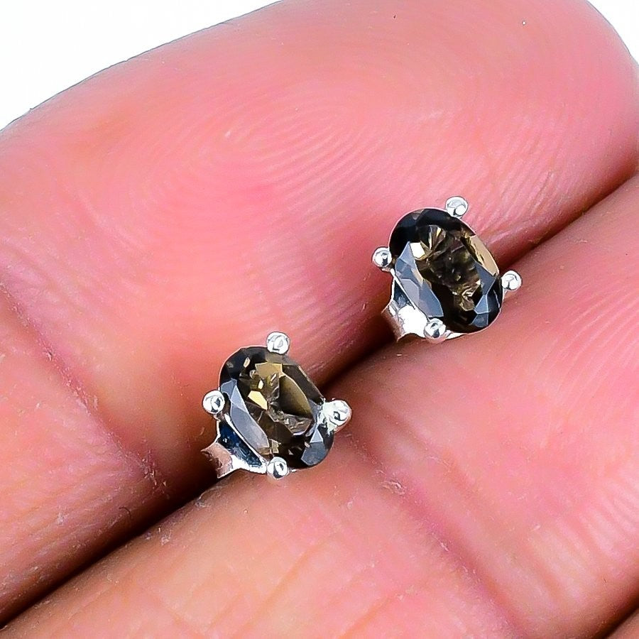 Natural Smoky Topaz Solid Sterling Silver Stud Best Daughters Gift Wife Earrings
