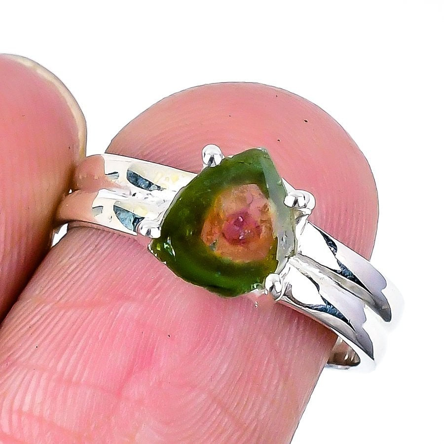 Watermelon Tourmaline Gemstone Sterling Silver Statement Handmade Ring US 7.5