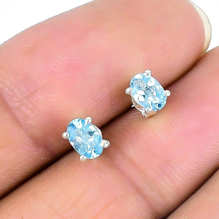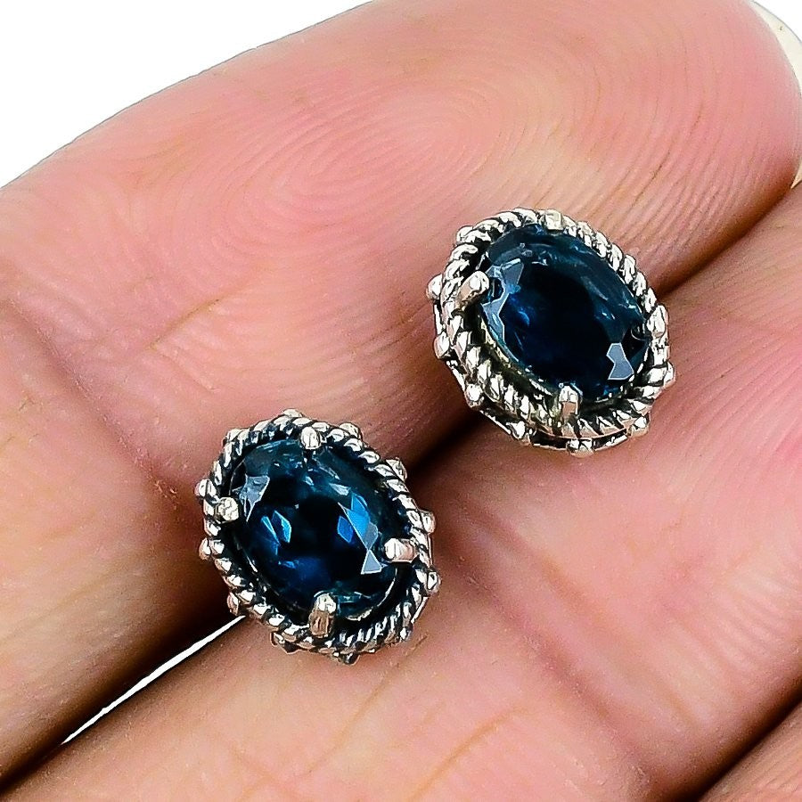 London Blue topaz Gemstone Sister Boho Stud Wedding Earrings 925 Sterling Silver