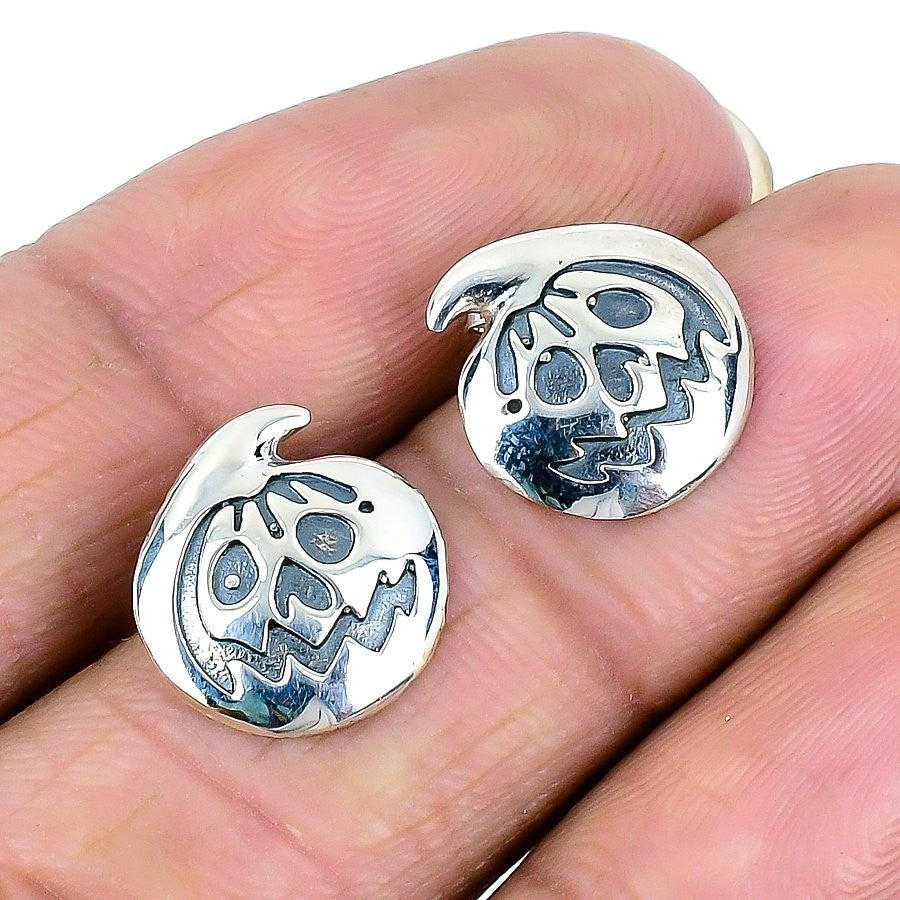 Skull Look Stone 925 Silver Birthday Daughter Wedding Stud Post Unique Earrings