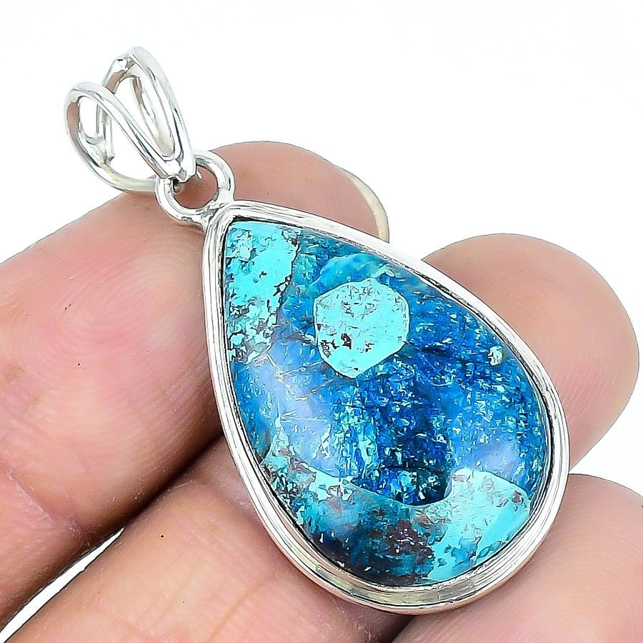Chrysocolla Gemstone Daughter Elegant Wedding Boho Pendant Solid Sterling Silver