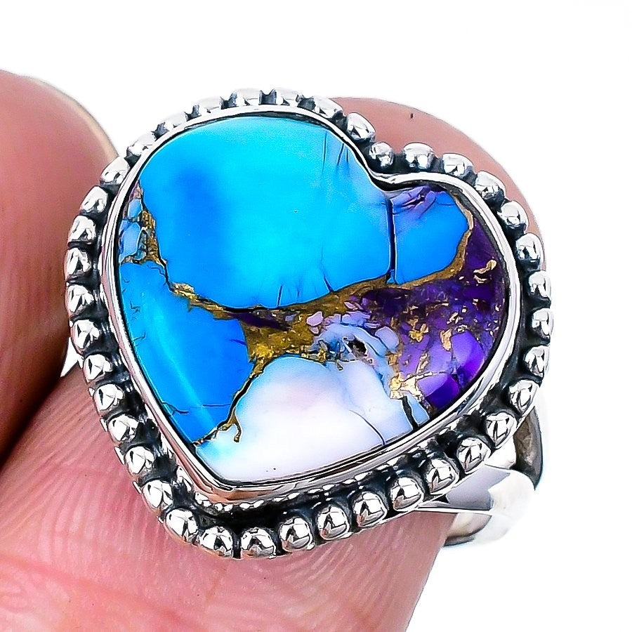 Kingman Purple Spiny Oyster Heart Stone Wedding Statement Ring Size 7 925 Silver