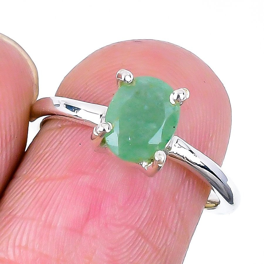 Heart Chakra Emerald Faceted Stone Art Deco Wife Statement New Ring Solid Silver