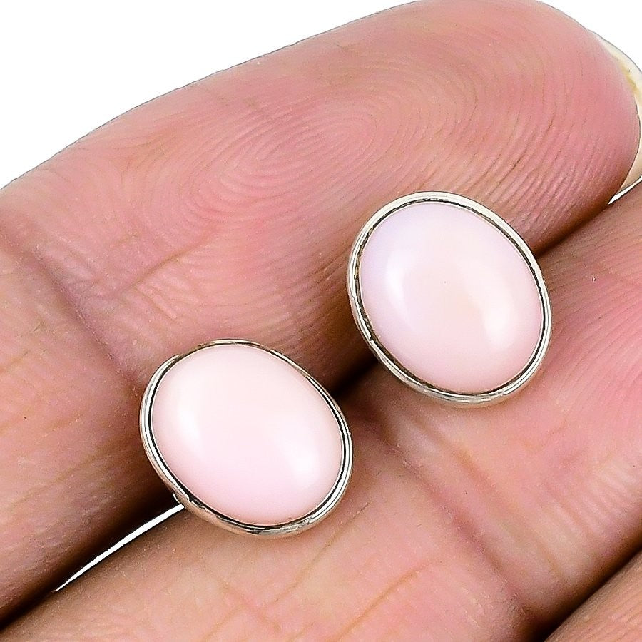 Natural Pink Opal 925 Solid Silver Unique Clip On Boho Stud Post Sister Earrings