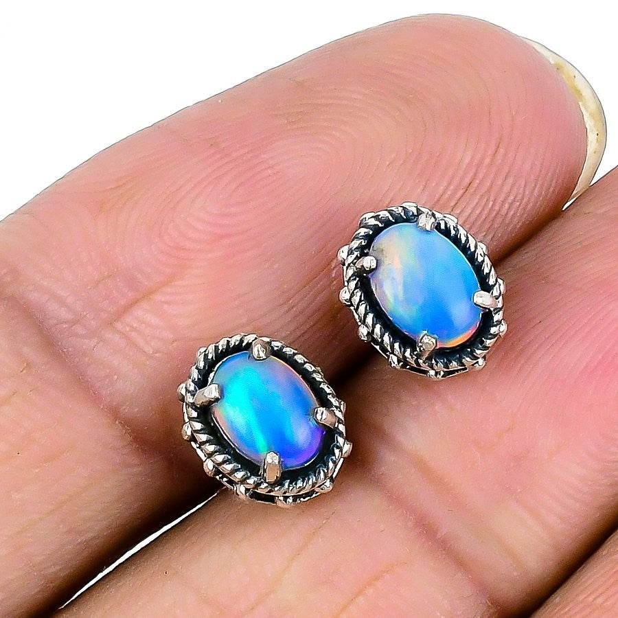Aurora Opal Stone Solid Silver Art Deco Stud Engagement Mother Birthday Earrings