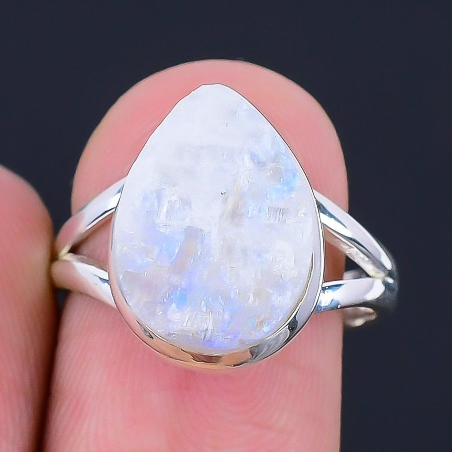Rainbow Moonstone Gemstone Solid Sterling Silver Wedding Statement Ring Size 8