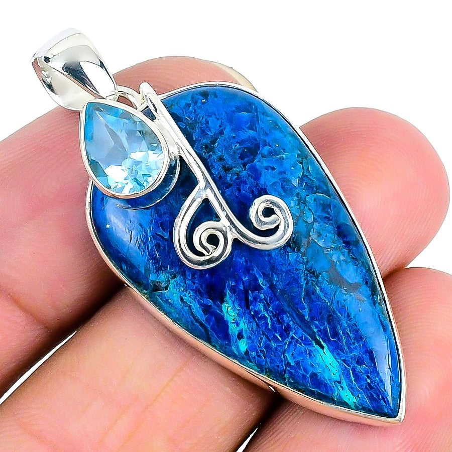 Shattuckaite Crysocolla Stone Sterling Silver Bezel Daughter New Pendant Jewelry