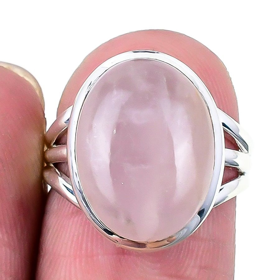 Rose Quartz Gemstone 925 Silver Channel Set Cluster Sister Ring Jewelry Size 6