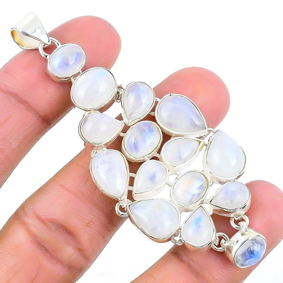 Rainbow Moonstone Stone 925 Sterling Silver Wedding Crown Chakra Pendant Jewelry