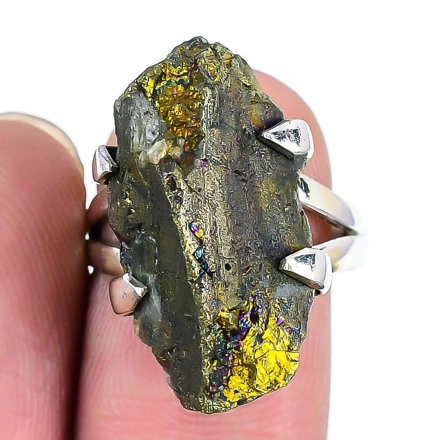 Natural Pyrite Druzy 925 Sterling Silver Ethnic Boho Statement Unique Ring US 8