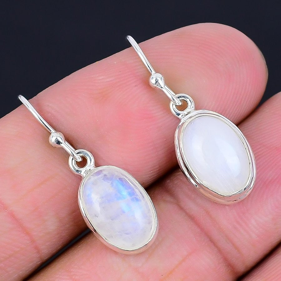 Rainbow Moonstone Stone 925 Sterling Silver Wife Drop Dangle Earrings Jewelry