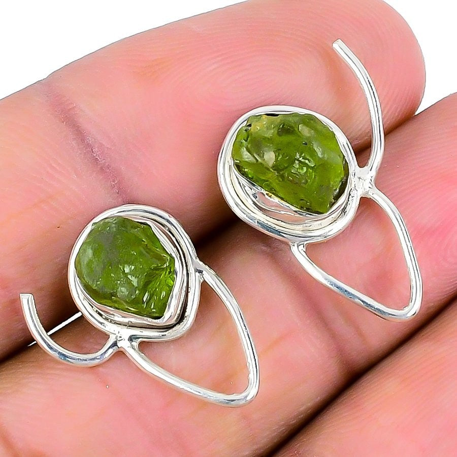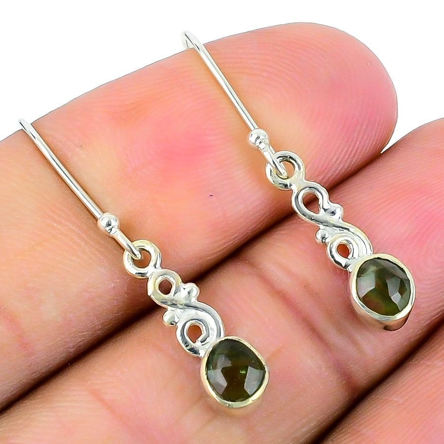 Natural Green Tourmaline 925 Silver Anniversary Boho Drop Dangle Hook Earrings