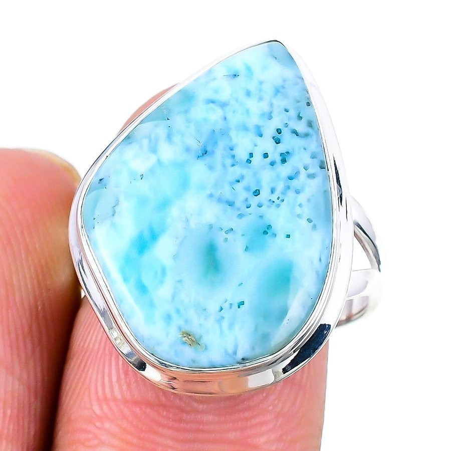 Republic Larimar Gemstone Solid Sterling Silver Statement Ring Jewelry Size 8.5
