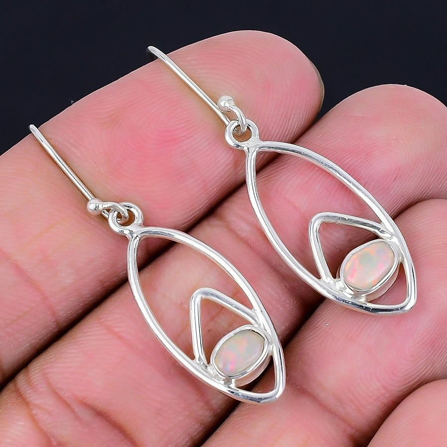 Ethiopian Opal Gemstone Engagement Birthday Dangle Hook Earrings Solid Silver