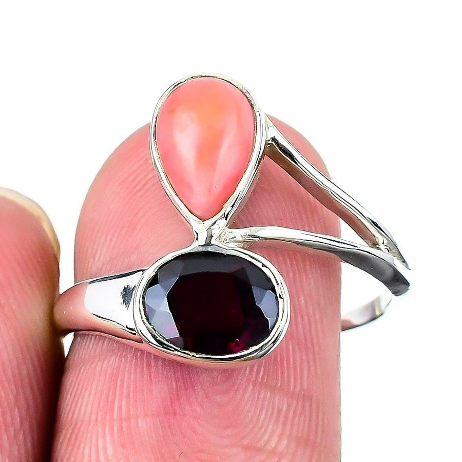 Natural Pink Opal Solid Sterling Silver New Statement Sister Ring Jewelry Size 9