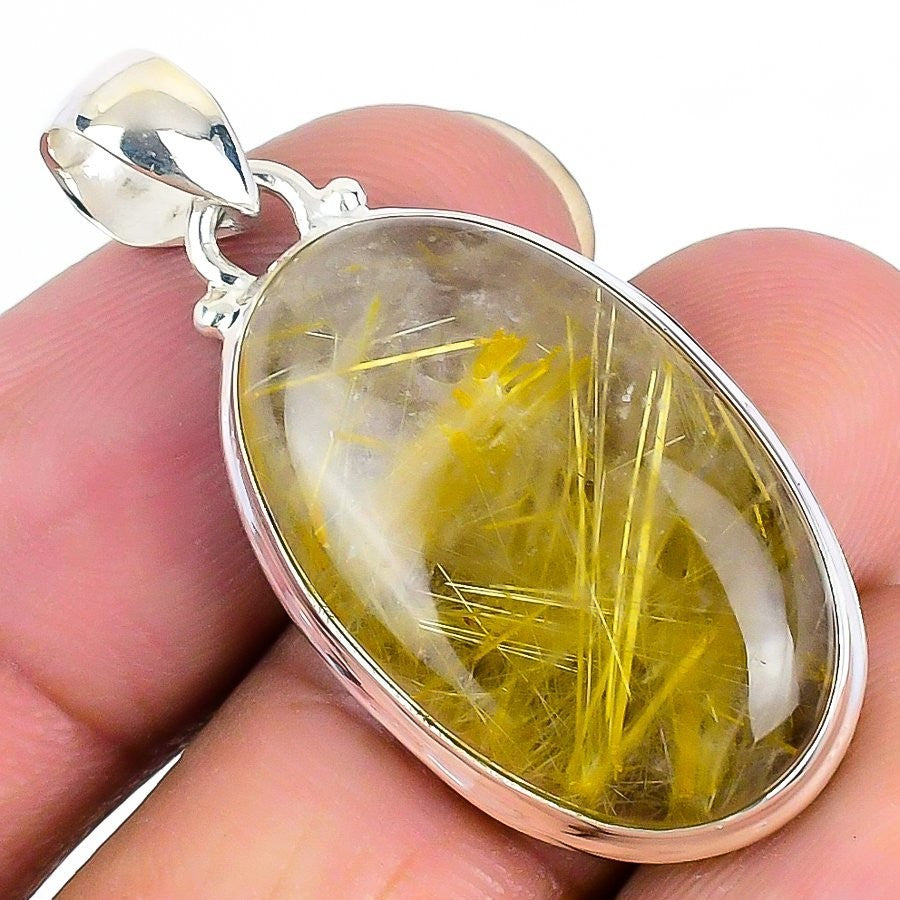 Natural Golden Rutile Solid Silver Bezel Engagement Birthday New Pendant Jewelry