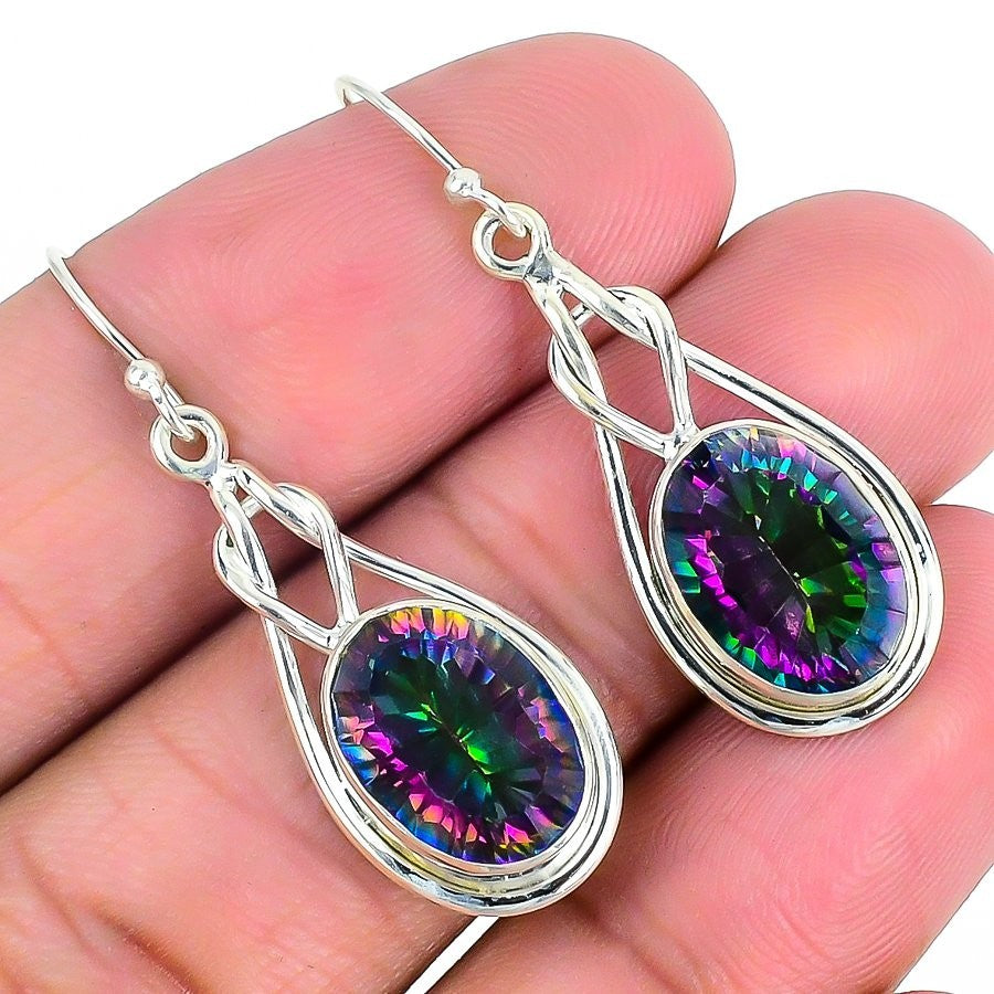 Natural Mystic Topaz Handcrafted Dangle Daughter Gift Earrings 925 Solid Silver