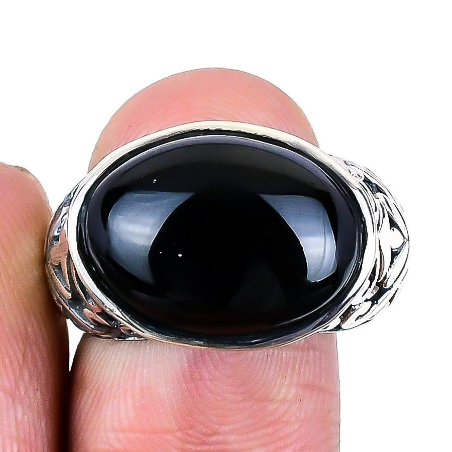 Root Chakra Black Onyx Stone 925 Silver Artisan Statement Daughter Ring Jewelry