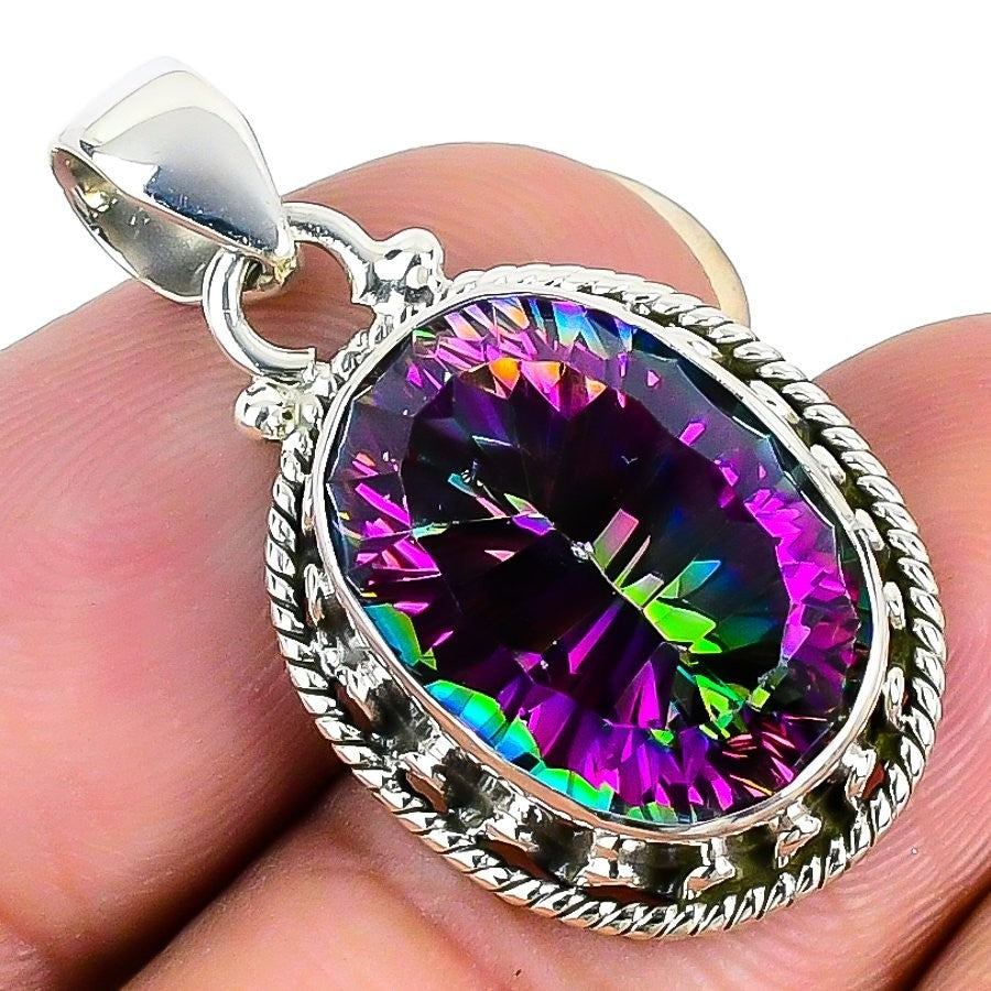 Natural Rainbow Mystic Topaz Handcrafted Pendant Jewelry Solid Sterling Silver