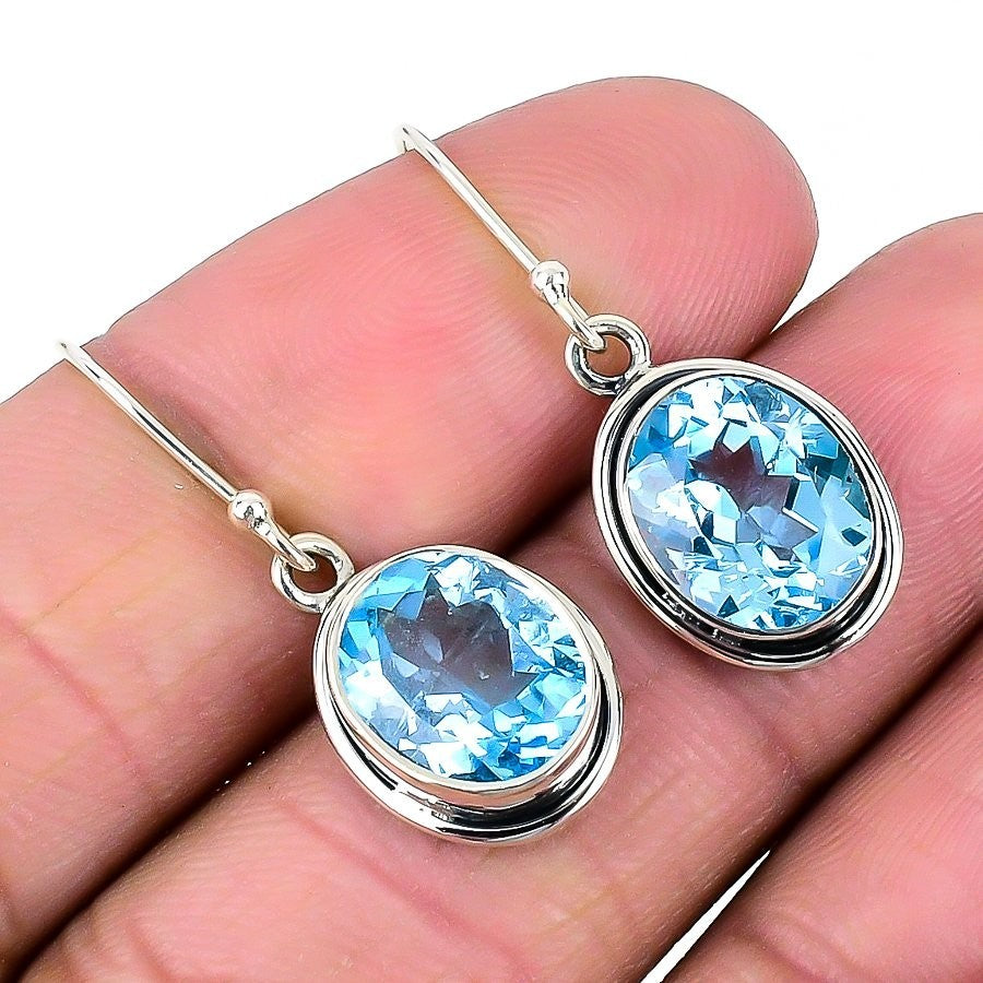 Daughters Day Sale Swiss Blue Topaz Gemstone Sterling Silver Drop Hook Earrings