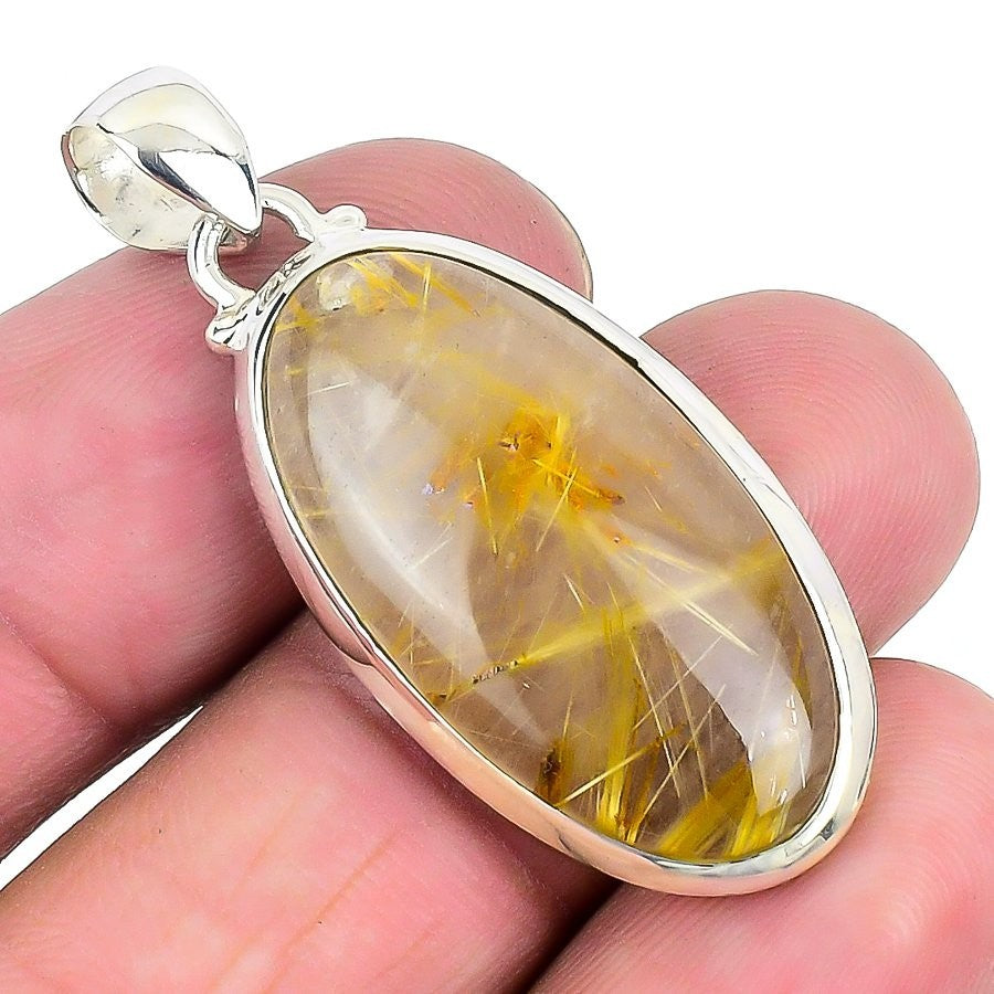 Golden Rutile Stone Solid Sterling Silver Daughter Artisan New Pendant Jewelry