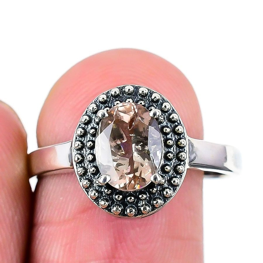 Morganite Gemstone 925 Sterling Silver Anniversary Elegant Ethnic Statement Ring