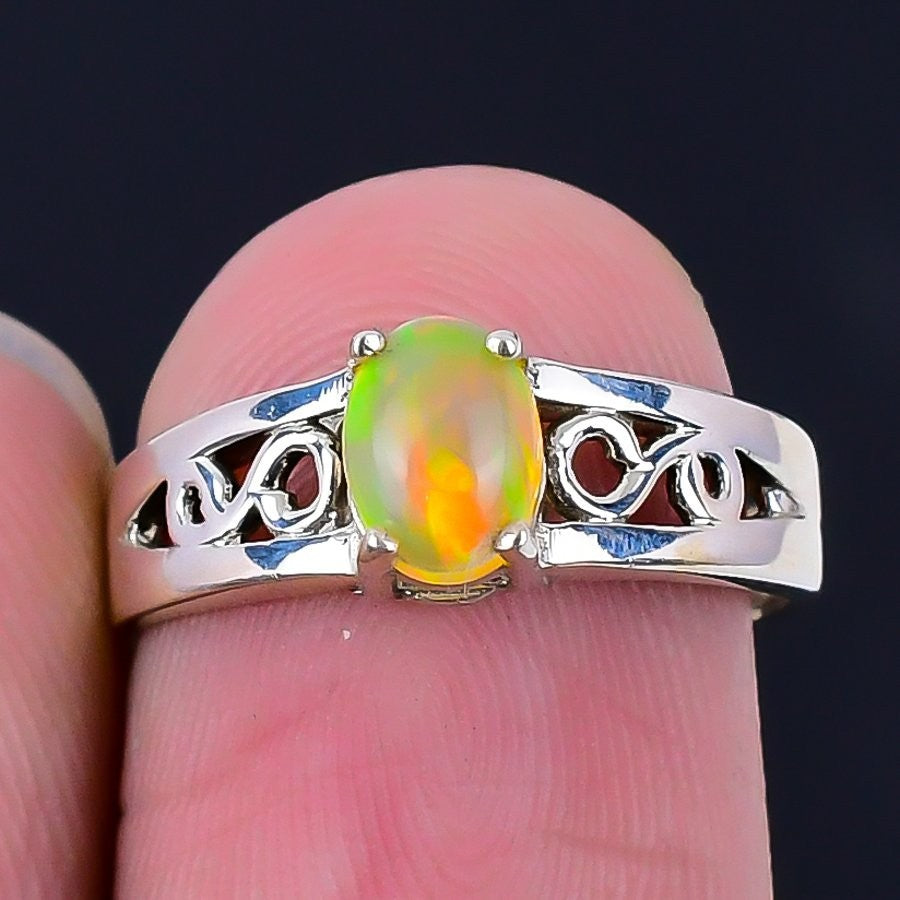 Ethiopian Opal Stone 925Ā SolidĀ Silver Engagement Statement Ring Jewelry US 6.5