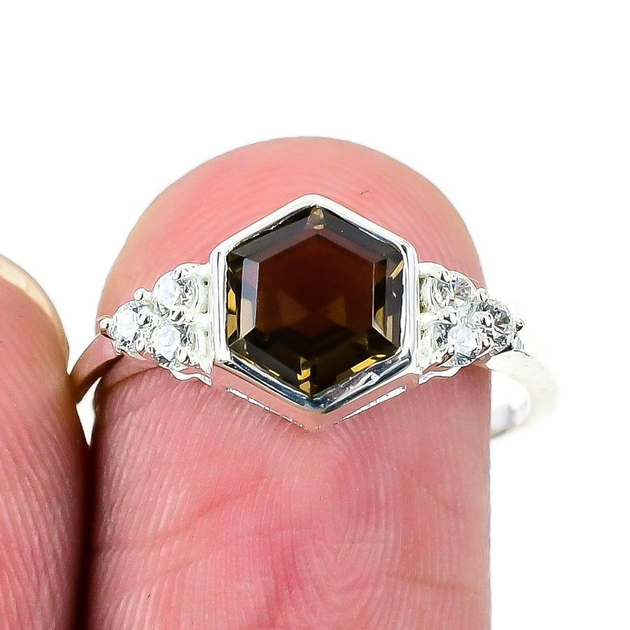 Citrine Stone Mother Birthday Statement Boho Ring Jewelry Sterling Silver US 9.5