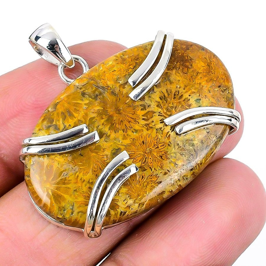 Fossil"Coral Stone 925 Silver Daughter Engagement Ethnic Wedding Pendant Jewelry