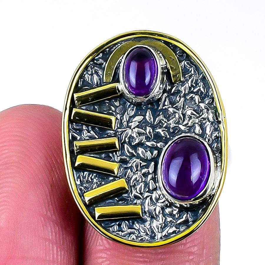 Natural Sage Amethyst 925 Sterling Silver Band Statement Wife Promise Ring US 7