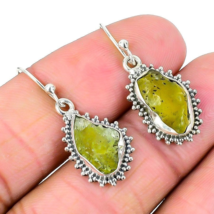 Chrysoprase Gemstone Solid Silver Trendy Hook Daughters Day Drop Unique Earrings