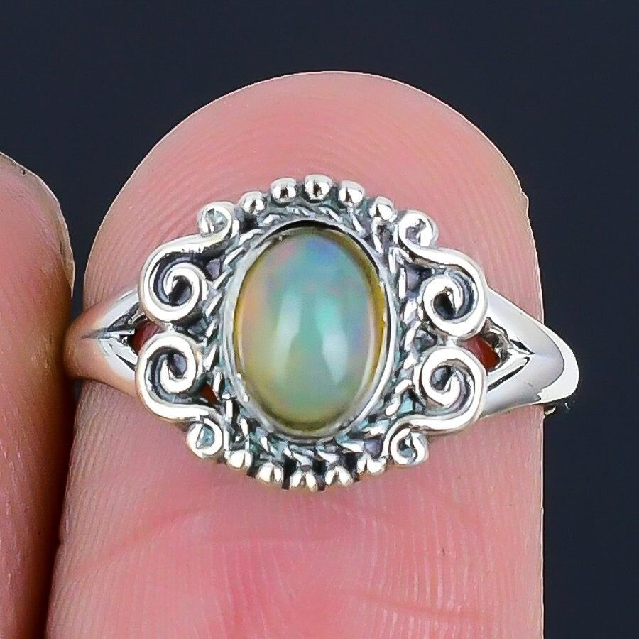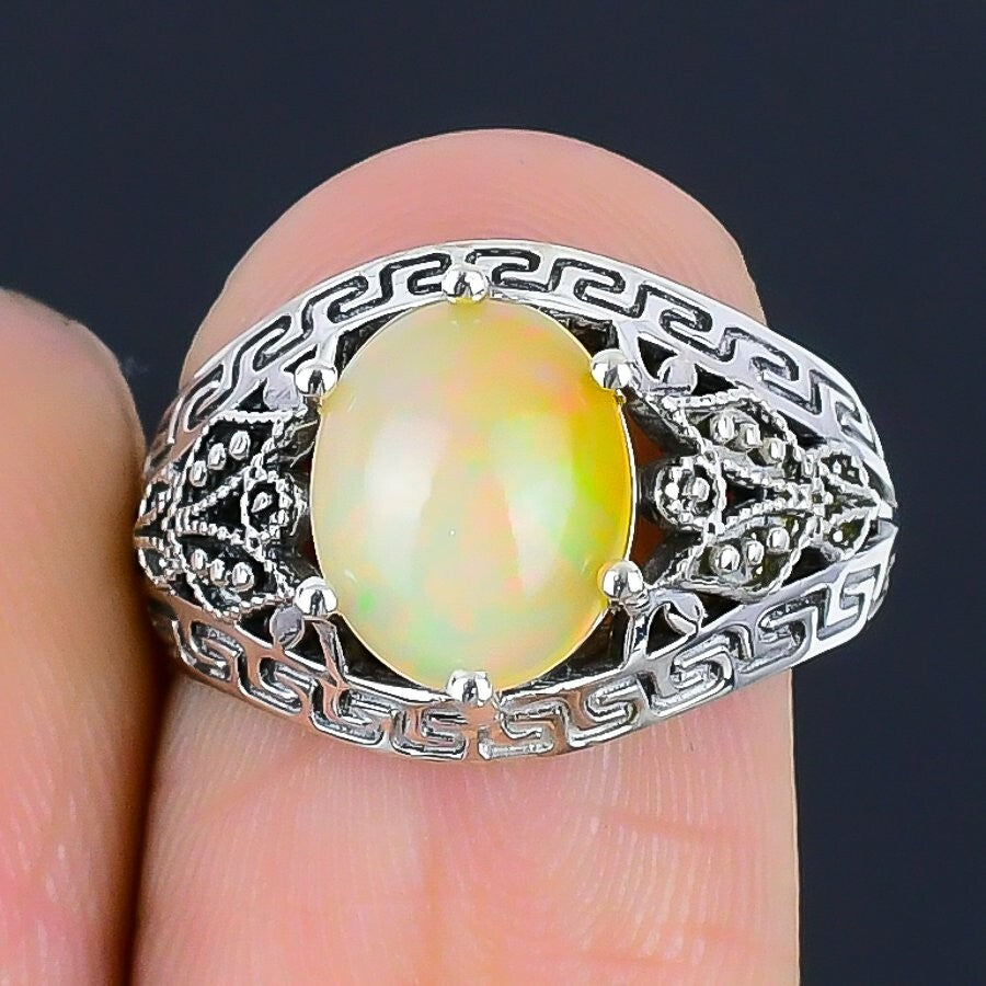 Natural Ethiopian Opal Birthday Cluster Wedding Ring Jewelry Size 9 Solid Silver