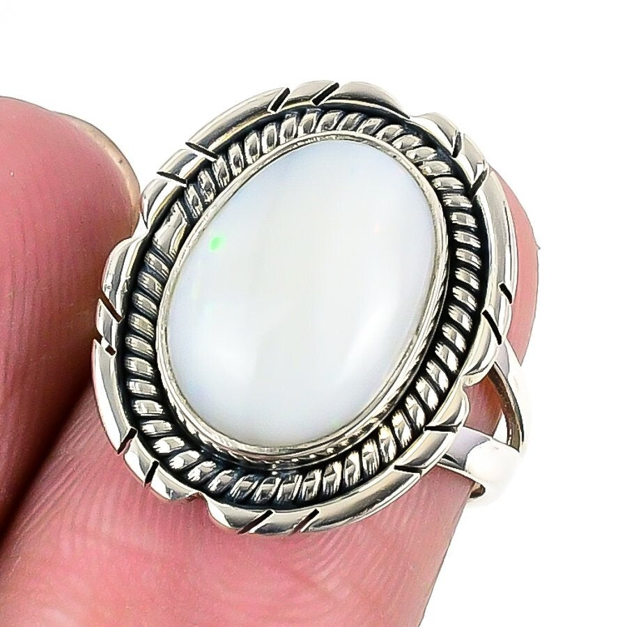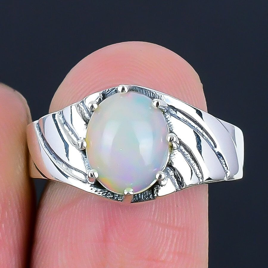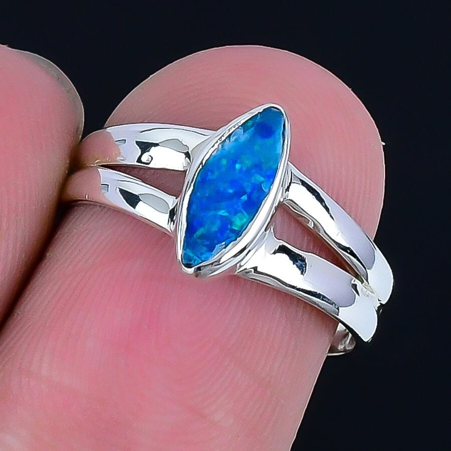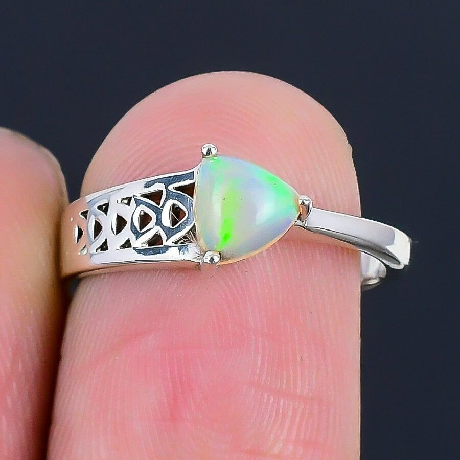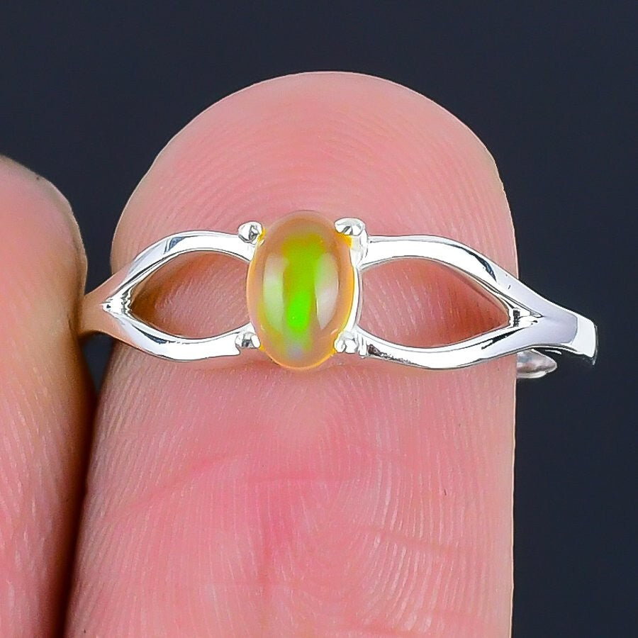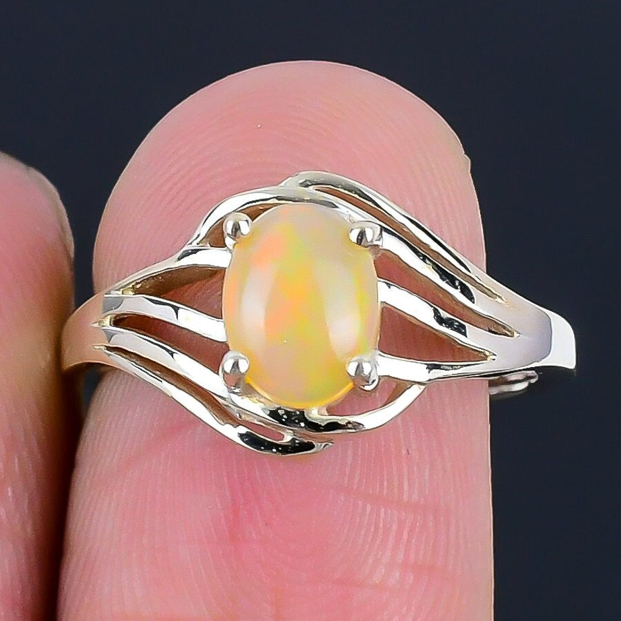 Memorial Day Deal Aurora Opal Gemstone Solid Silver Trendy Statement Ring Size 6
