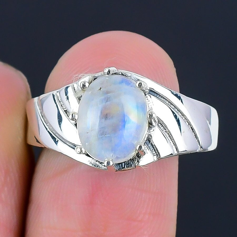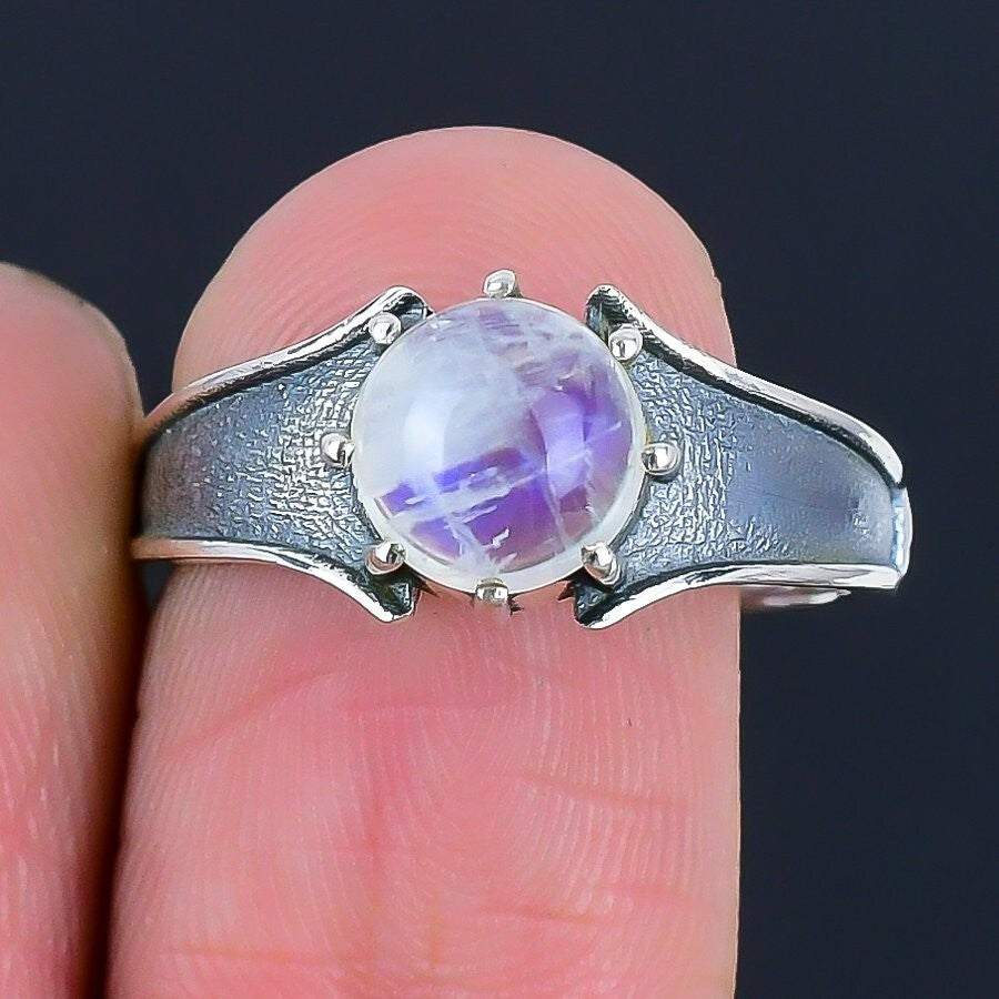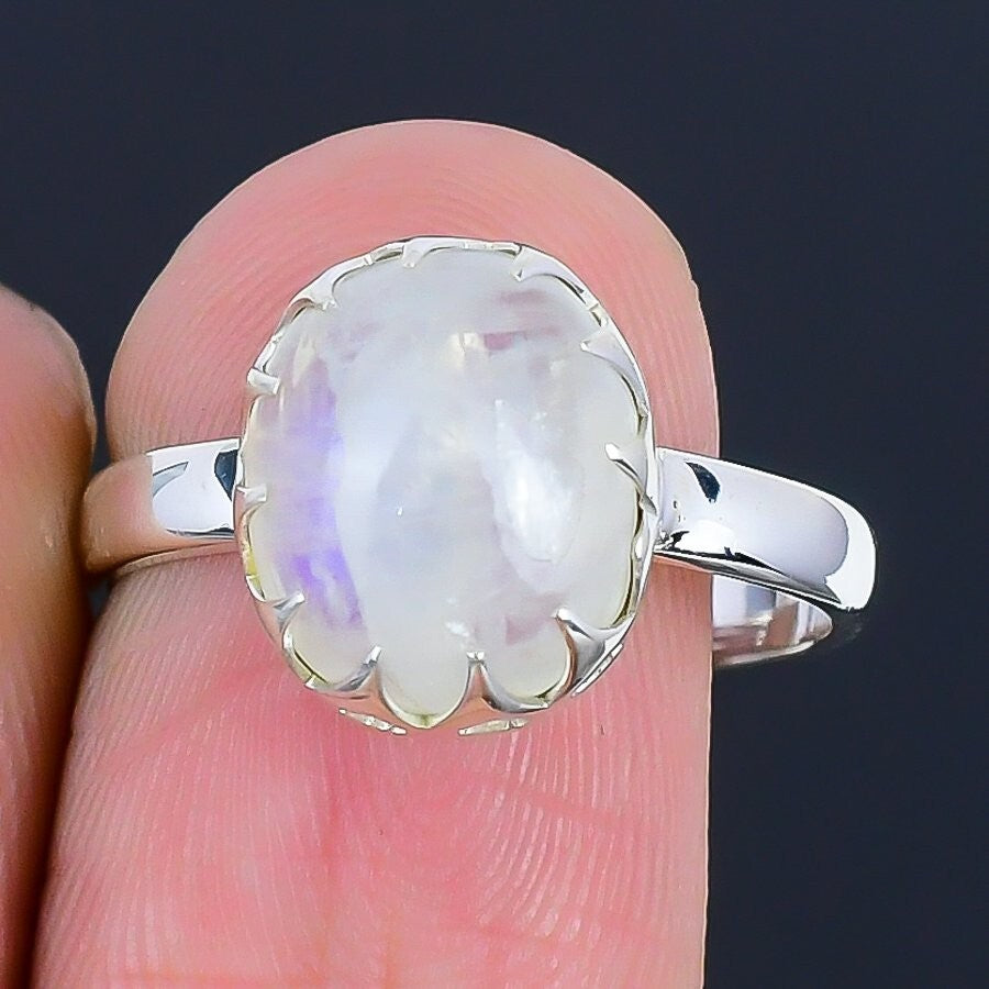 Natural Rainbow Rainbow Moonstone Solid Silver Cluster Wife Ring Jewelry Size 6
