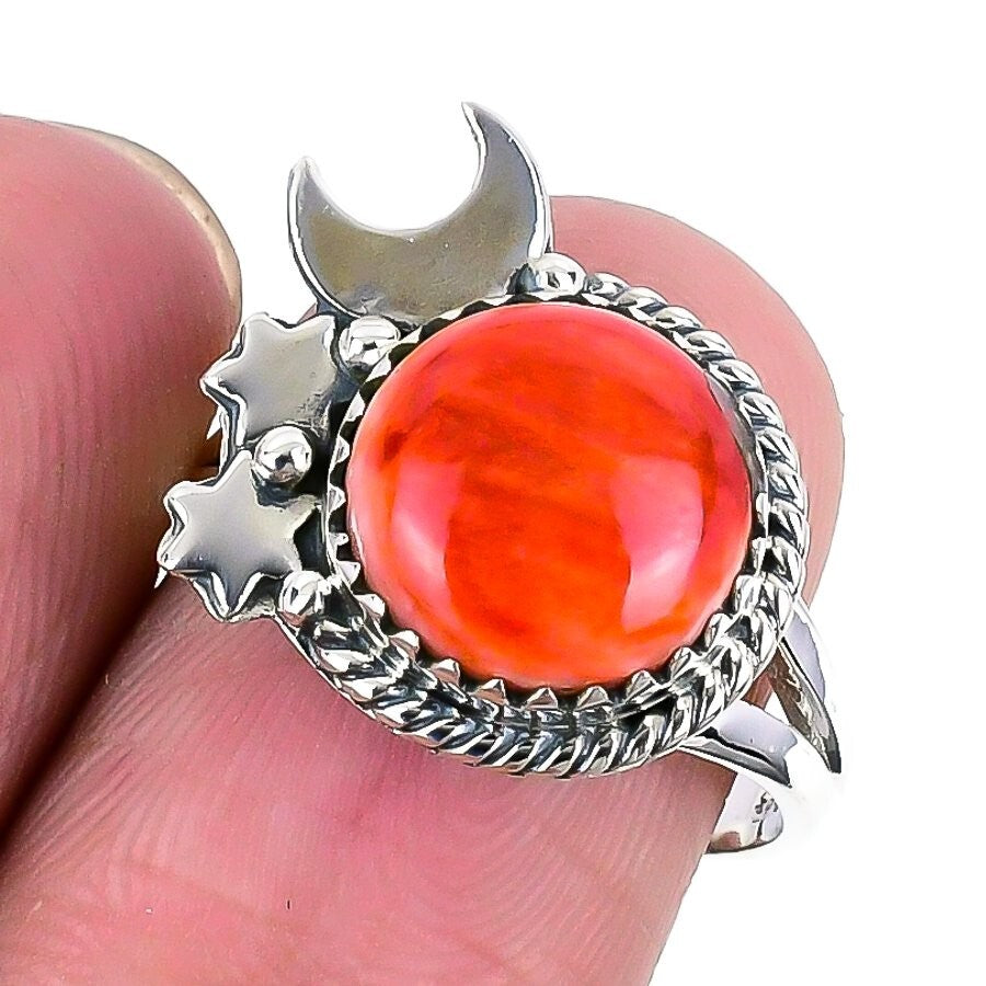 Orange Spiny Oyster Stone Wife Cluster Birthday Ring Jewelry Size 8 Solid Silver