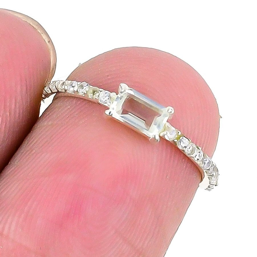 Natural White Topaz Solid Sterling Silver Cluster Wife New Ring Jewelry Size 5