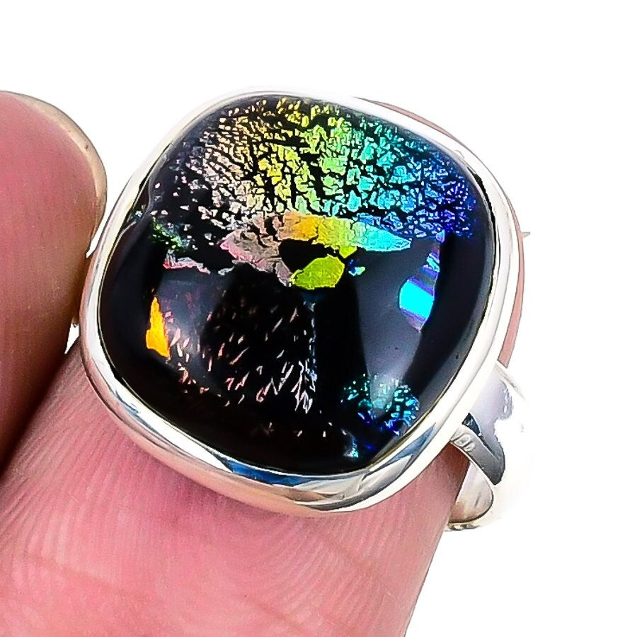 Mexican Dico Glass Gemstone Solid Silver Birthday Cluster Ring Jewelry Size 7.5