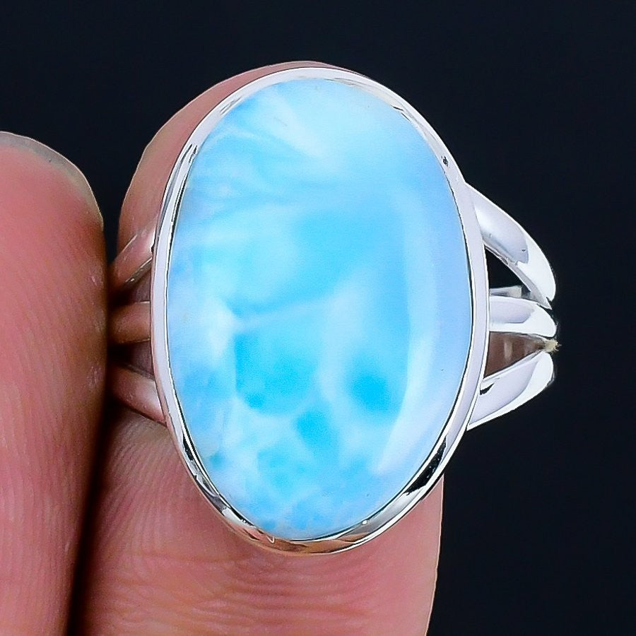 Republic Larimar Gemstone Handmade Statement Ring 925 Sterling Silver US 10.5