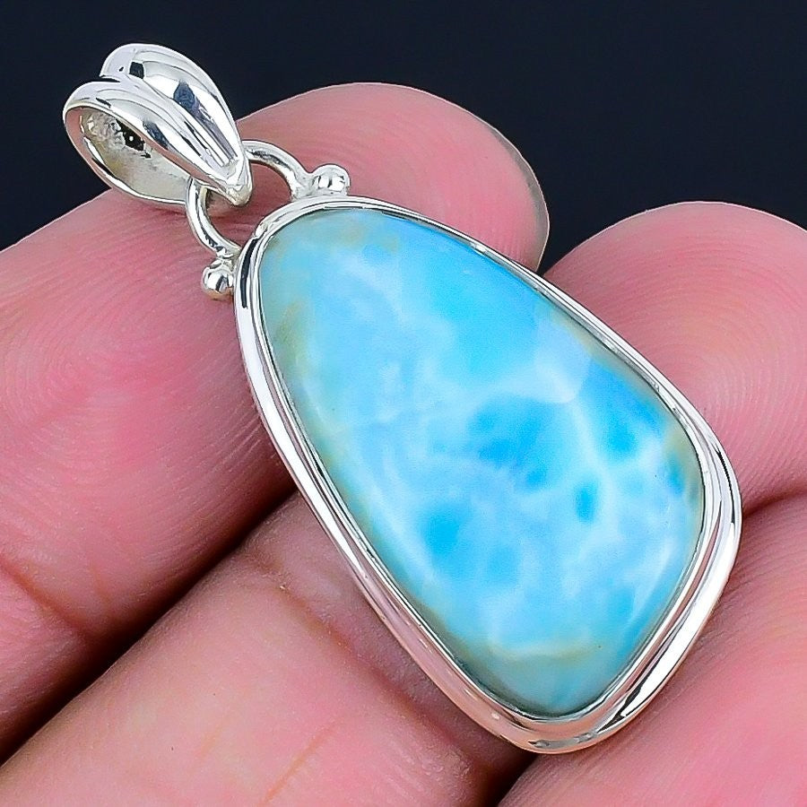 Natural Republic Larimar 925 Sterling Silver Channel Set Wedding Pendant Jewelry