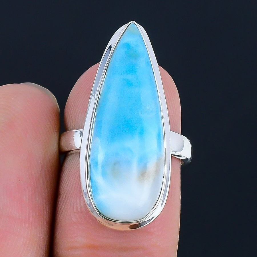 Natural Larimar Solid Sterling Silver Wife Statement Artisan Ring Jewelry Size 6