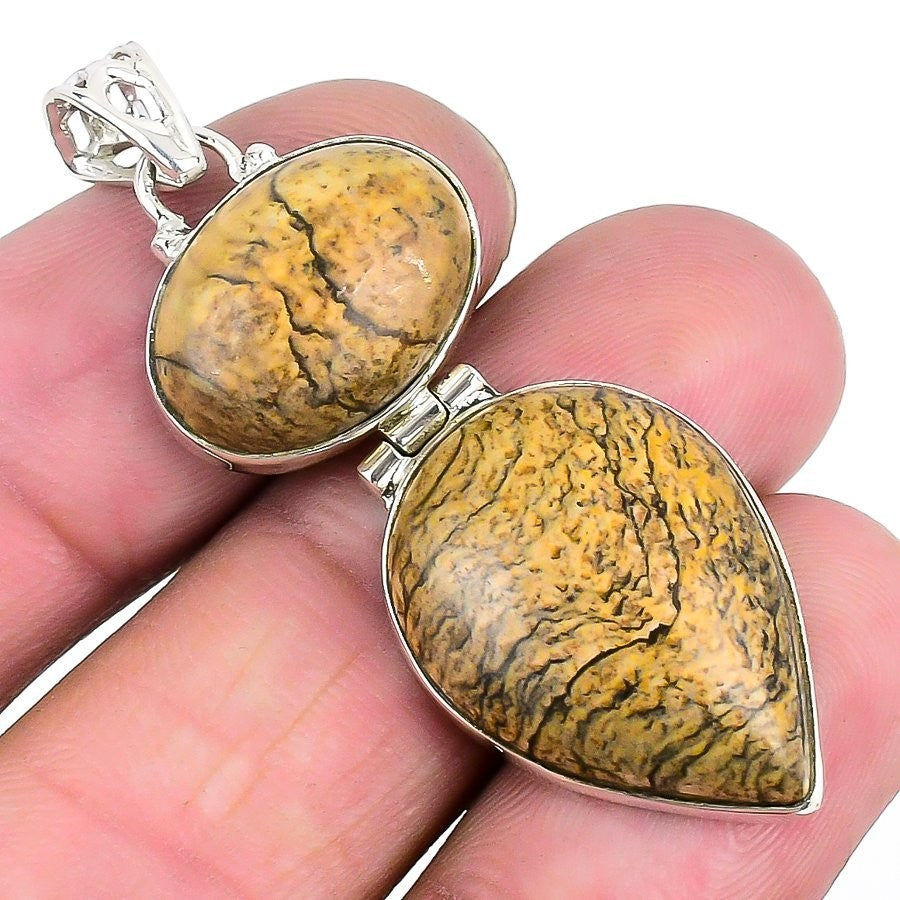 Natural Picture Jasper 925Ā SolidĀ Silver Channel Set Daughter New Pendant Jewelry